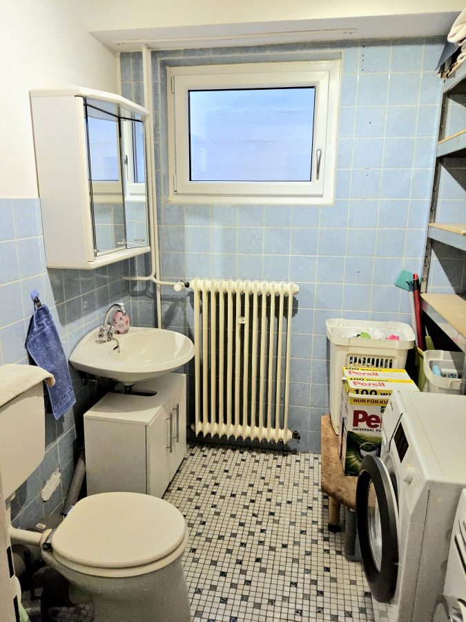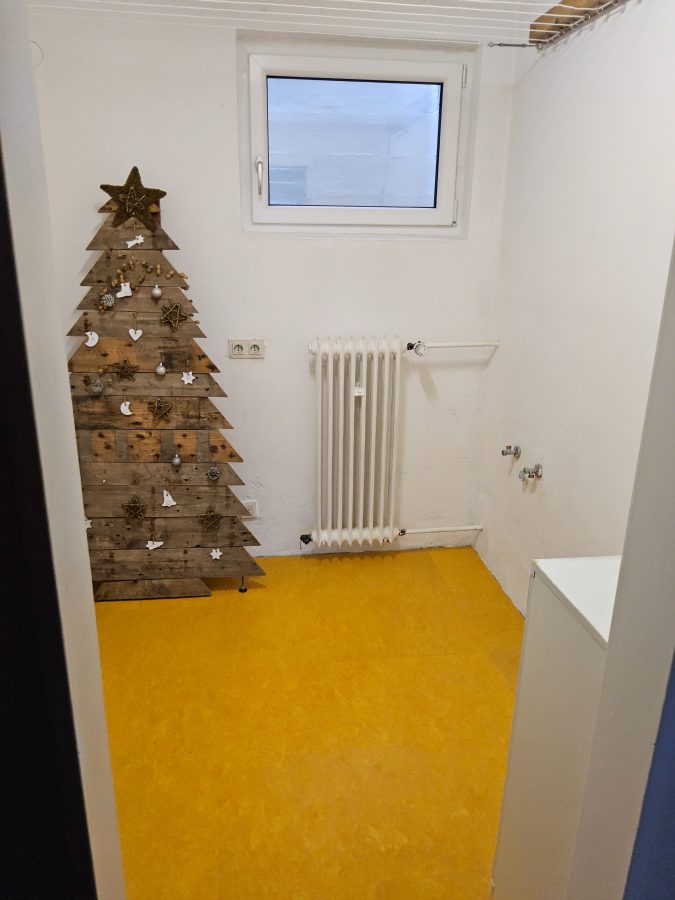 In diesem Teil des Untergeschosses gibt es noch eine kleine Küche (z. Z. Trockenraum) und ein Duschbad.