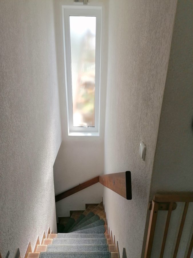 Vom Schlaftrakt aus, führt eine massive Treppe in das Untergeschoss.
