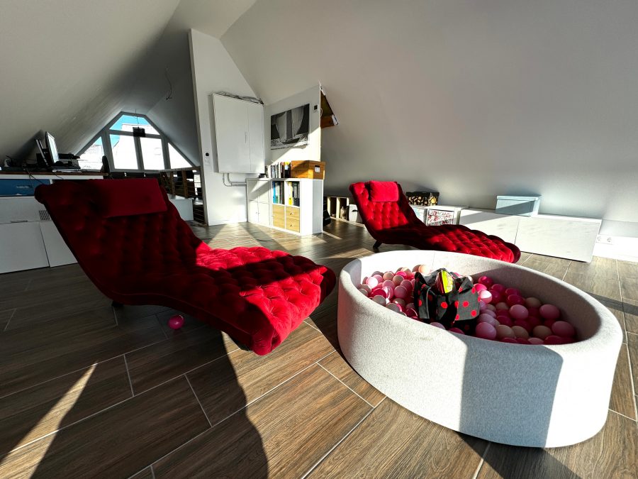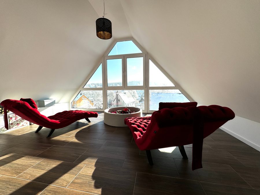 Dachgeschoss: Ein Highlight ist das geräumige Wohnstudio im Dachgeschoss. Mit seinem herrlichen Ausblick bietet es einen idealen Platz zum Entspannen. Dieser vielseitige Raum kann auch als Arbeitszimmer oder Gästezimmer genutzt werden und passt sich somit Ihren Lebensumständen an.