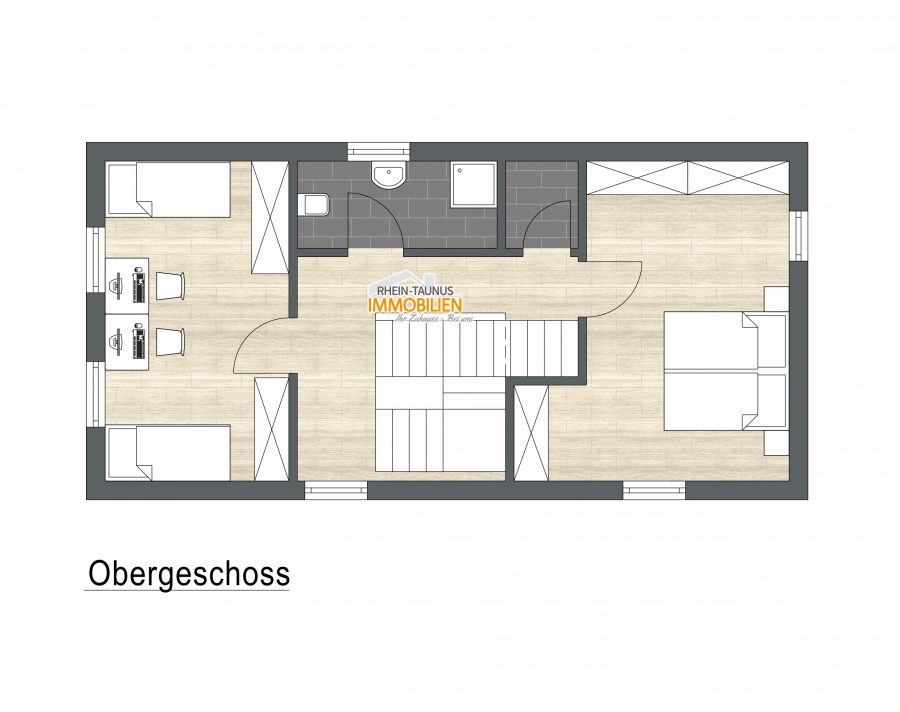 Obergeschoss: Flur, Duschbad, Schlafzimmer, Kinderzimmer, Hauswirtschaftsraum