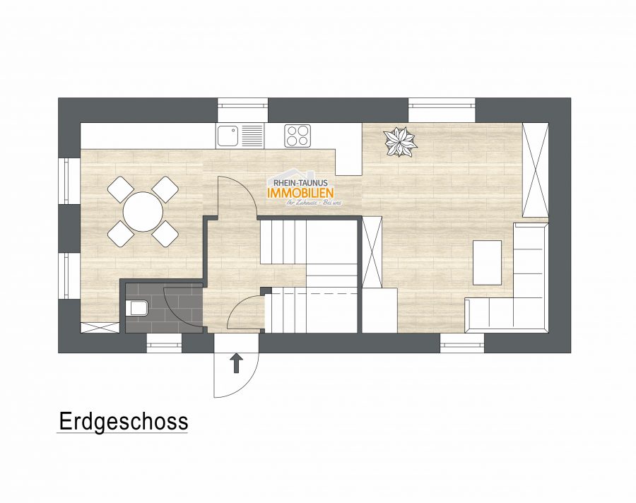 Erdgeschoss: Diele, Gäste-WC, offener Wohn- und Essbereich inklusive Küche