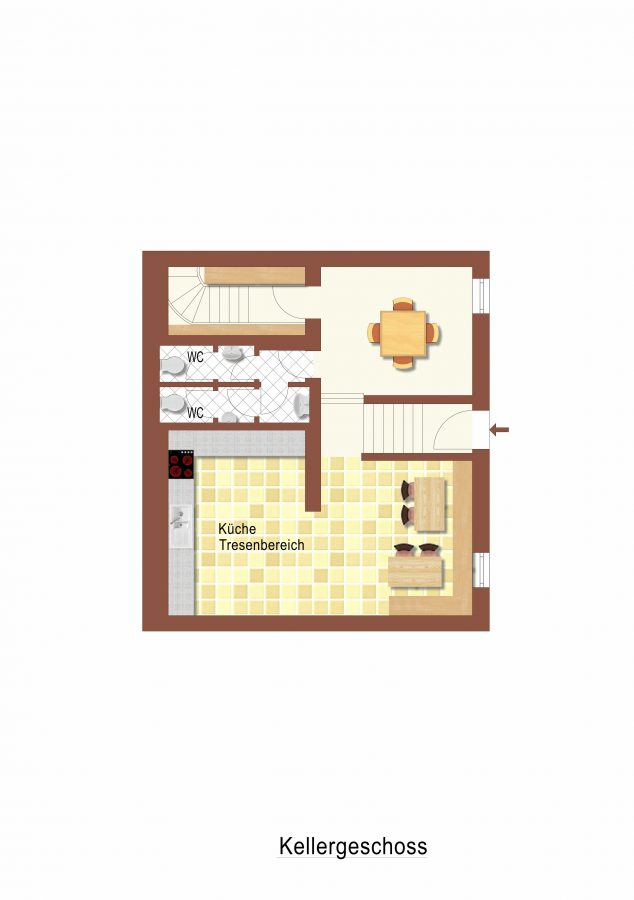 Kellergeschoss (ca. 45m²): Gewölbekeller inklusive Thekenraum, Toilettenanlage Damen u. Herren mit zusätzlichen separaten Zugang von der Straße