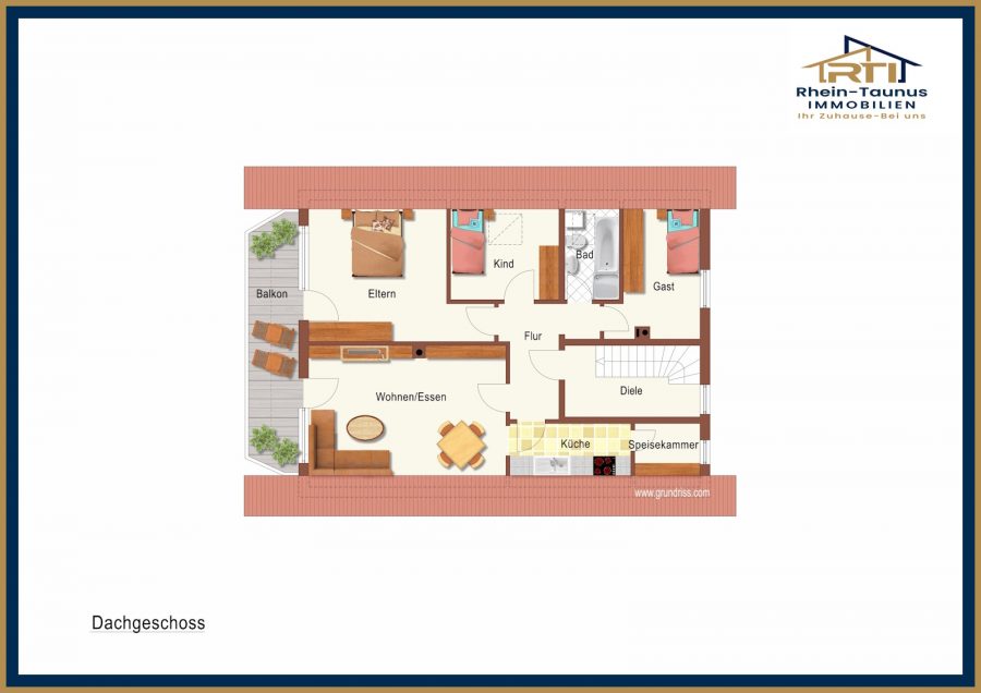 Wohnung Dachgeschoss (ca. 92m²): Flur, offenes Wohn- Esszimmer mit Küche und Vorratskammer, 3 Schlafzimmer, Badezimmer, Balkon