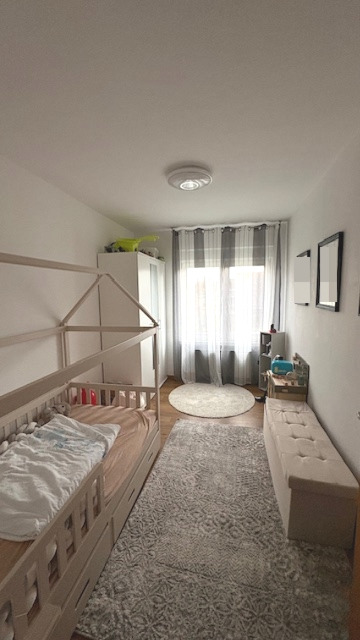 Die Wohnung liegt im Obergeschoss und besteht aus 3 Zimmern, Küche, Abstellraum, Flur und Bad.